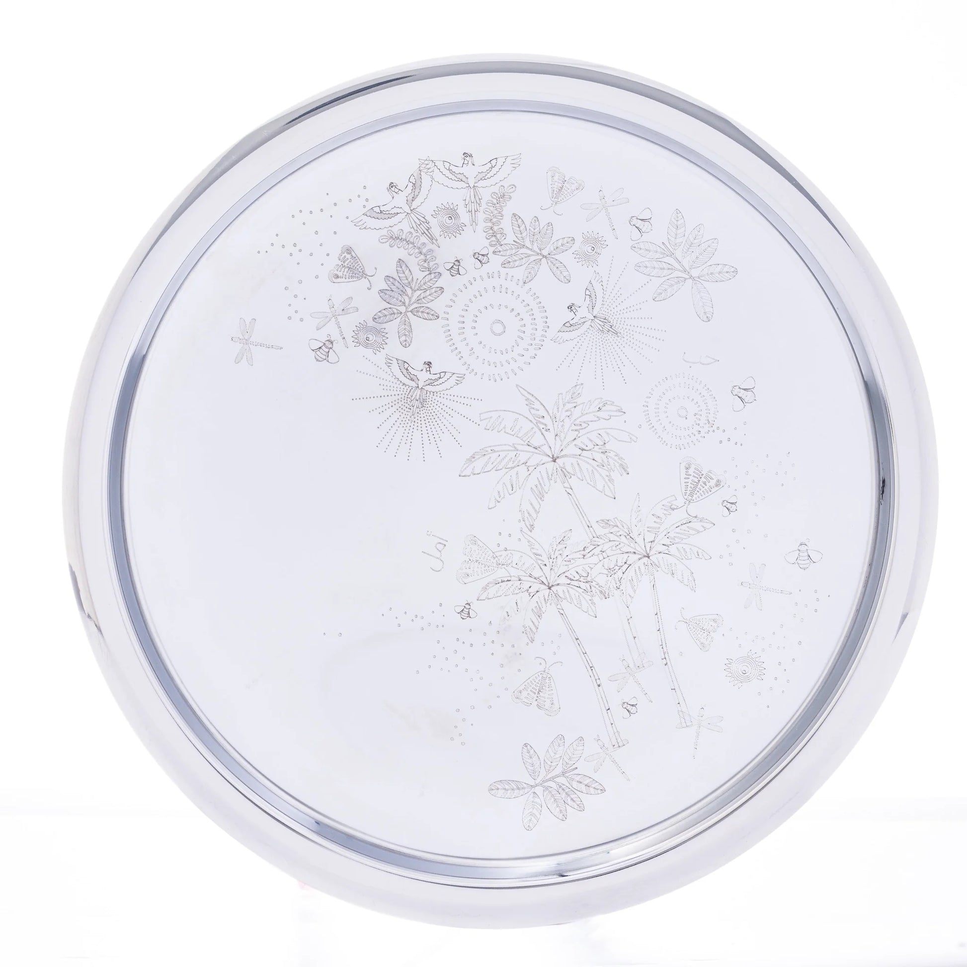 Timeless elegance meets versatility with our silver hand-engraved cake stand. Perfect for showcasing decadent cakes, fresh fruit, delicate tarts, or even bite-sized treats, this beautifully crafted piece doubles as a stunning decorative display. Whether you're hosting a lavish gathering or adding charm to your space, this stand is the perfect blend of sophistication and functionality.
